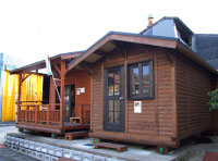 これを使用したキットハウスは、部材がすべてプレカット済みなので、セルフビルドも可能。プレカットは2棟/日の加工能力(3~4坪タイプの場合)を有するロボット加工機で行っている。基本タイプのほかに自由設計にも対応する。価格は標準的な仕様のもので3坪タイプなら60数万円程度と安価なのも魅力だ。仕様樹種は基本的にすべてスギ。土台にはヒノキを使用している。やはりオリジナル商品であるスギのウッドデッキやウッドフェンスとの組み合わせも可能だ。